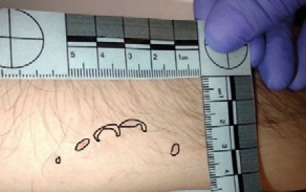 Dama, N.; Forgie, A., Mânica, S. y Revie, G. (2019). Exploring the degrees of distortion in simulated human bite marks. International Journal of Legal Medicine 134, 1043-1049. https://doi.org/10.1007/s00414-019-02163-5