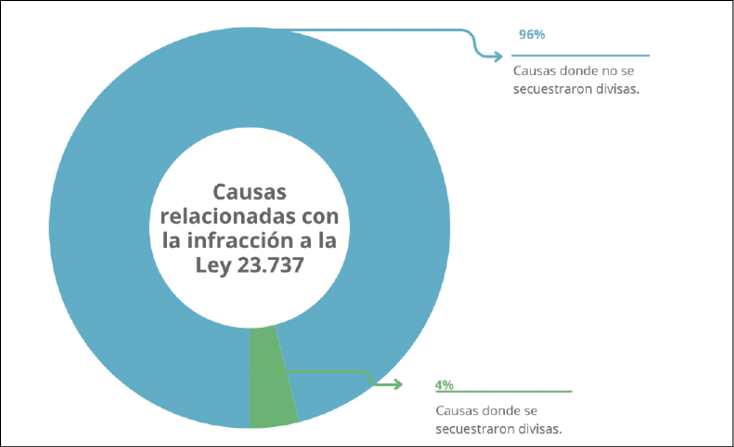 El presente trabajo explora y analiza el grado de incidencia de la falsificación de moneda en causas vinculadas al narcotráfico. La iniciativa tuvo su origen en el interés de los partícipes de conocer en profundidad el fenómeno de los “narco-dólares”, definidos como producciones espurias de papel moneda que luego son empleadas en transacciones comerciales de estupefacientes. Los dólares provenientes del narcotráfico, forman parte de un delito paralelo a éste, ya que contribuye a la extensión del contrabando y narcotráfico. Teniendo en cuenta lo anteriormente explicado, surgió la pregunta acerca de si, en las causas judiciales por infracción a la Ley 23.737 ¿se considera el dinero secuestrado? Por ello, el equipo de investigación optó por analizar el rol del estudio forense de divisas encontradas en procedimientos llevados a cabo por infracción a la Ley 23.737, a fin de establecer su inobservancia, o no, frente al secuestro de drogas.