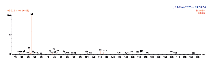 Figura N° 12. Espectro de masas de la sustancia con tiempo de retención 11.06minutos.