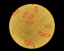 En este examen, se tomó el sedimento de la muestra antes tratada y fue colocada en un porta-objetos, para ser observada microscópicamente a 40X, en un Microscopio Binocular con iluminación X-Led3 blanca, modelo B-292PLi, marca Optika. A fin de visualizar células espermáticas.