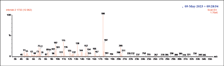 Figura N° 12. Espectro de masas de la sustancia con tiempo de retención 11.06minutos.